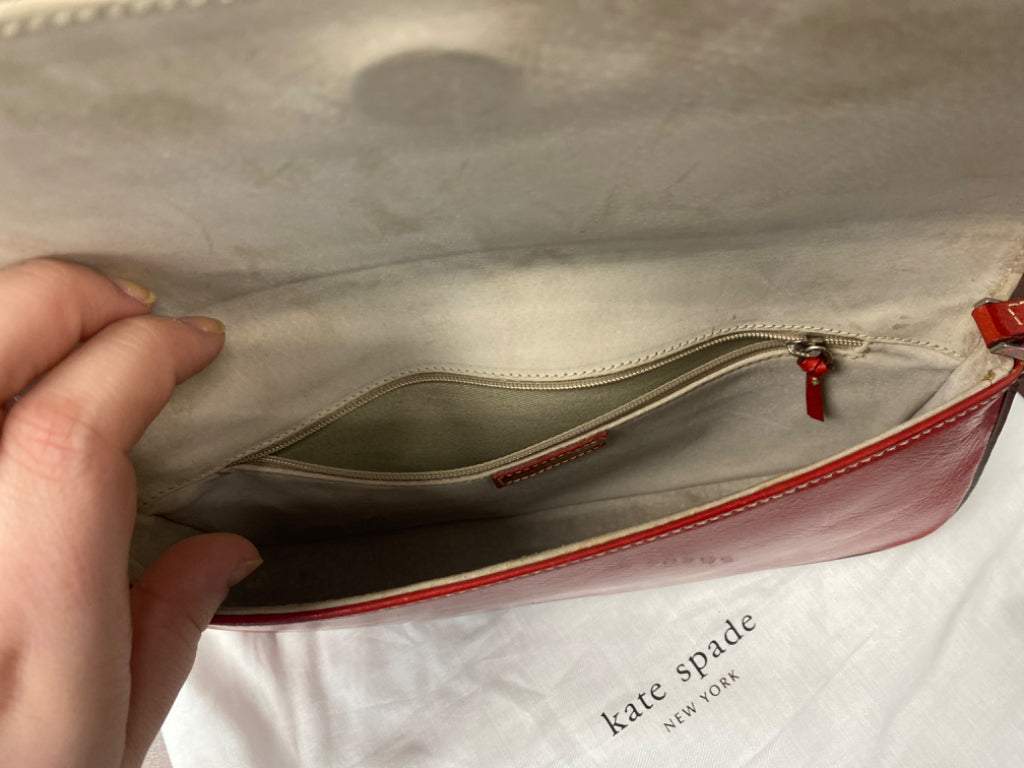 Description : Authentic vintage small red Kate Spade bag with cream stitching.